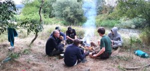 Camp-Küche, jeden Tag einige Kilometer in Rucksäcken getragen und unterwegs ein Fluss ohne Brücke überquert werden.